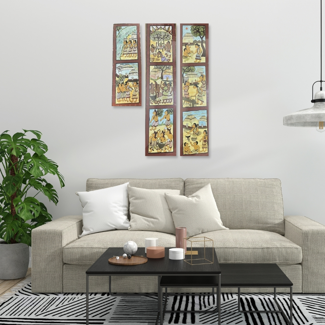 Working within the living traditions of tribal and Paitkar folk art, Kishor Gayen transforms everyday experiences into structured visual narratives. Using acrylic on canvas or paper, he documents gestures of daily life, ritual and social interaction that define village culture. Paitkar Masterpiece stands as a reflection of artistic heritage, where storytelling, colour and pattern preserve the continuity of tradition.