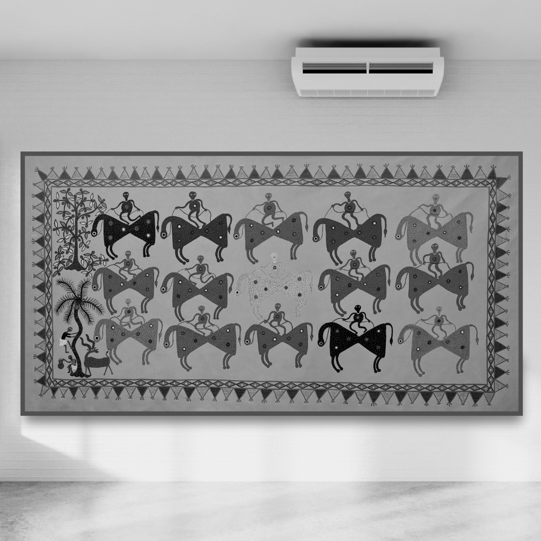 Own a unique piece of Indian folk heritage with this beautiful ""Pithora Horses"" artwork which is a tribute to tradition and culture.