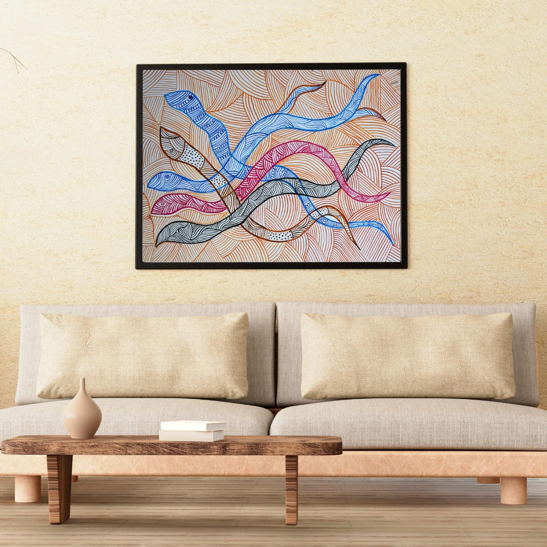 Baiga paintings are usually unframed but can be framed for display and protection if desired.