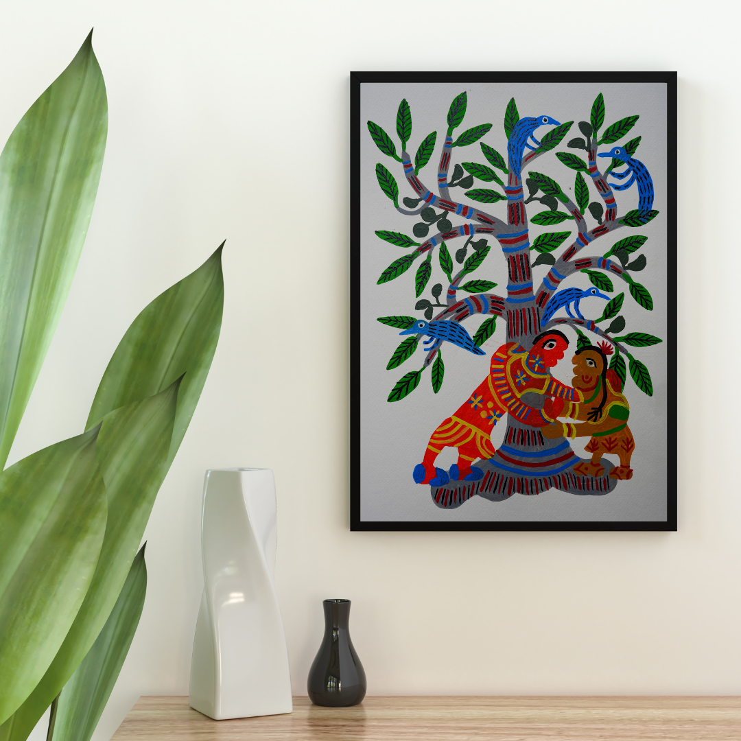 Baiga paintings are usually unframed but can be framed for display and protection if desired.