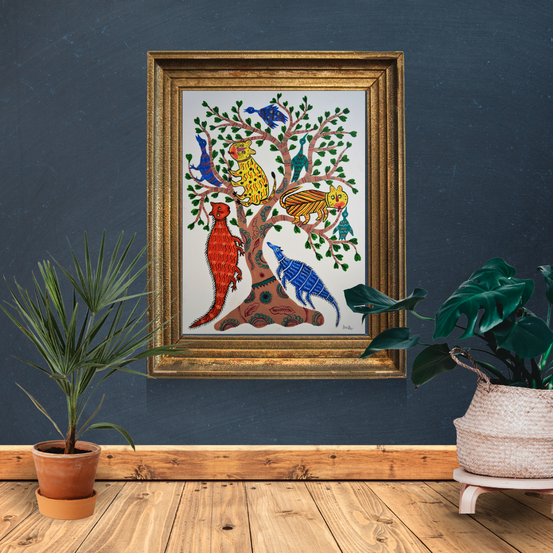 Baiga paintings are usually unframed but can be framed for display and protection if desired.