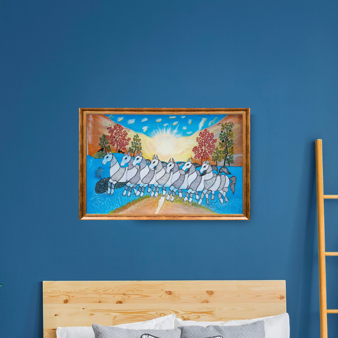 Auspicious Art -Horses are seen as a symbol of success, growth and progress. This painting is ideal for those who follow Vastu guidelines in their homes and spaces.