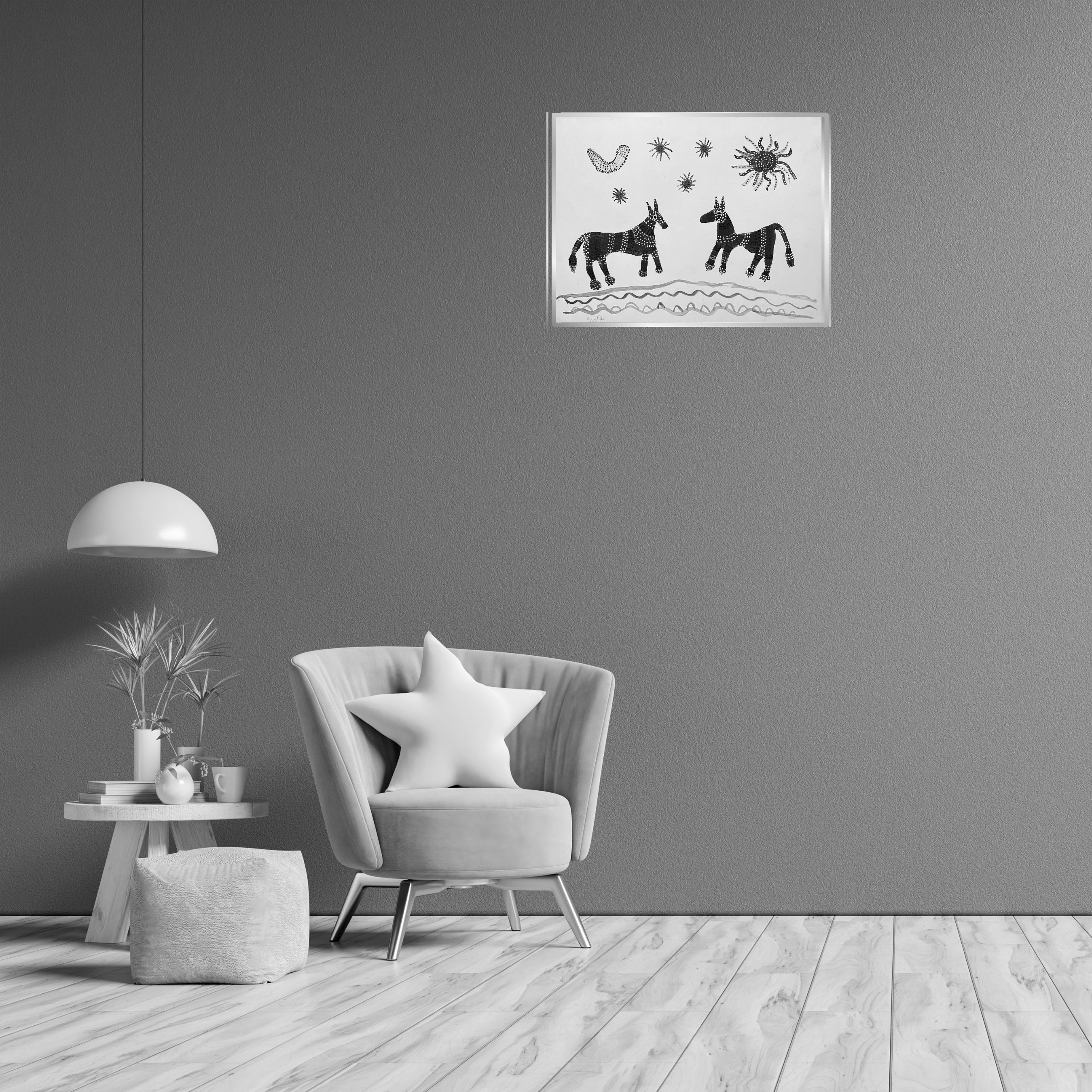 - Every horse, sun, moon and star is painted entirely by hand by Lado Bai, making this a unique original artwork with no mechanical reproduction involved.