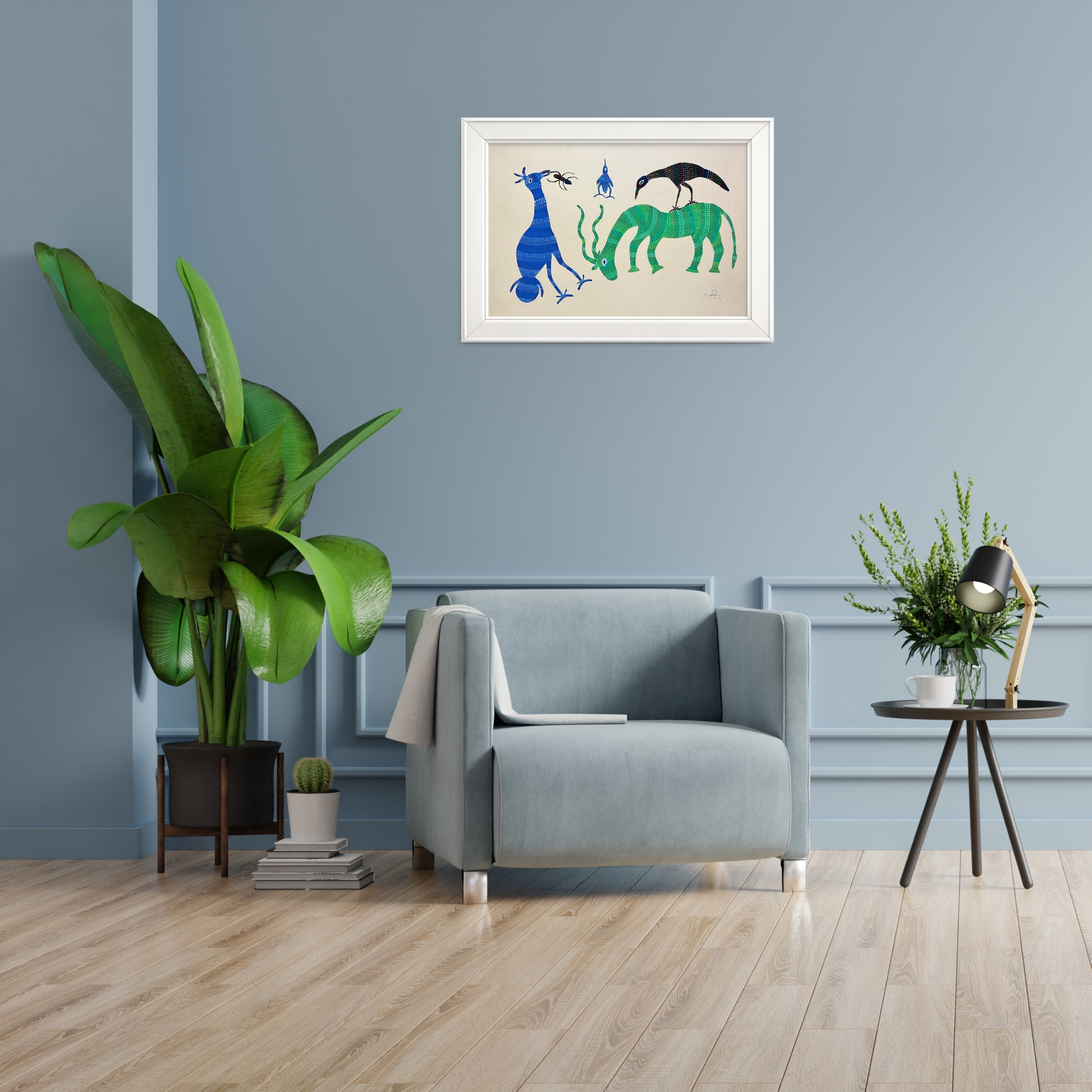 - As an authentic Bhil painting exploring the theme of interspecies kinship, this artwork holds deep cultural resonance and lasting collectible value.