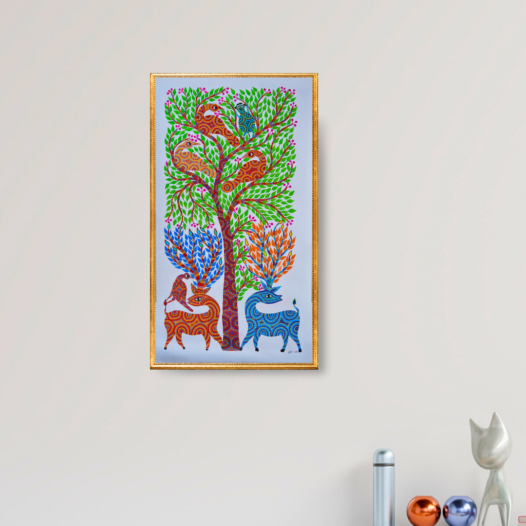 This Bhil painting which celebrates nature’s harmony is perfect for calm and mindful spaces.