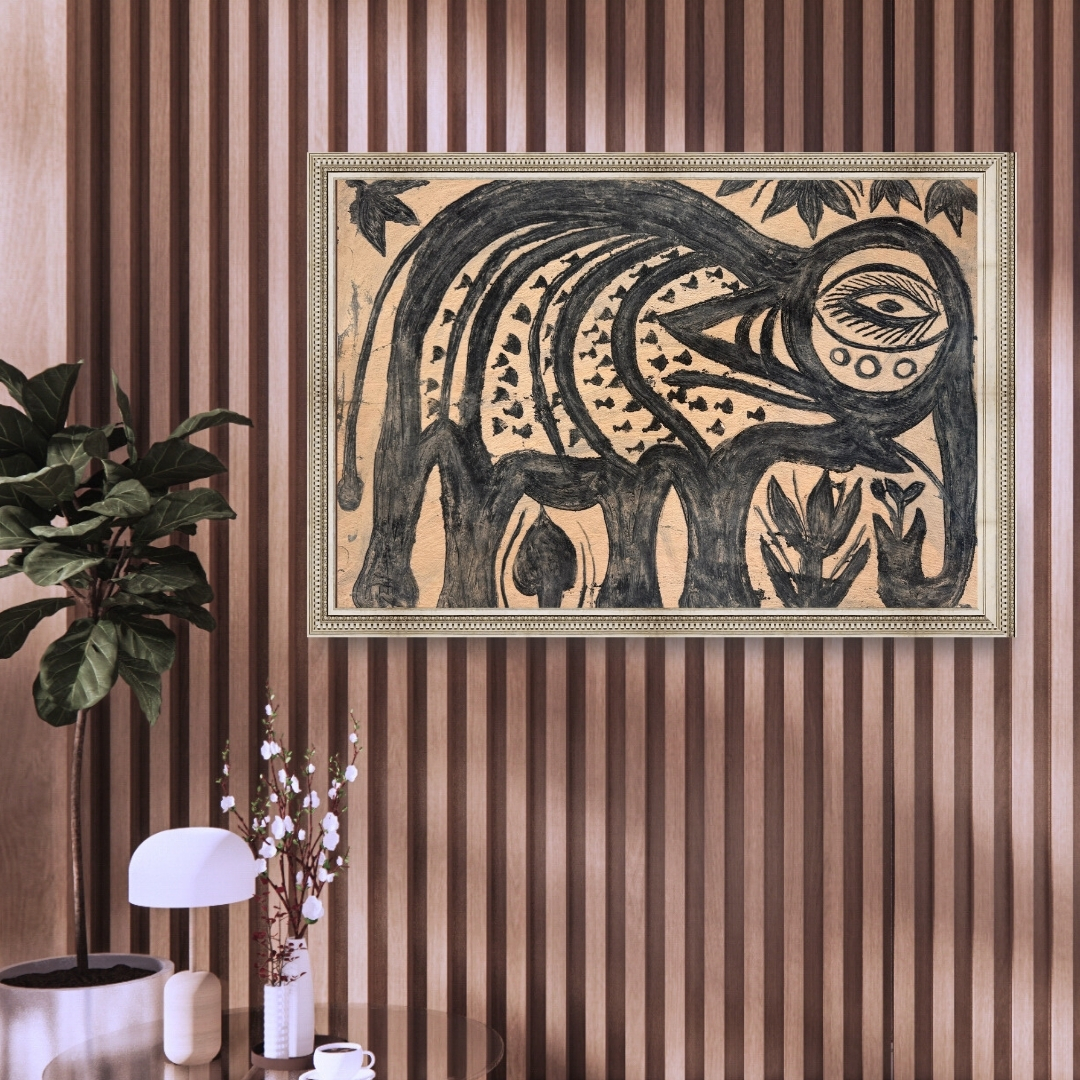 This work will resonate with collectors drawn to earthy tones, indigenous symbolism, and timeless depictions of nature’s guardians.