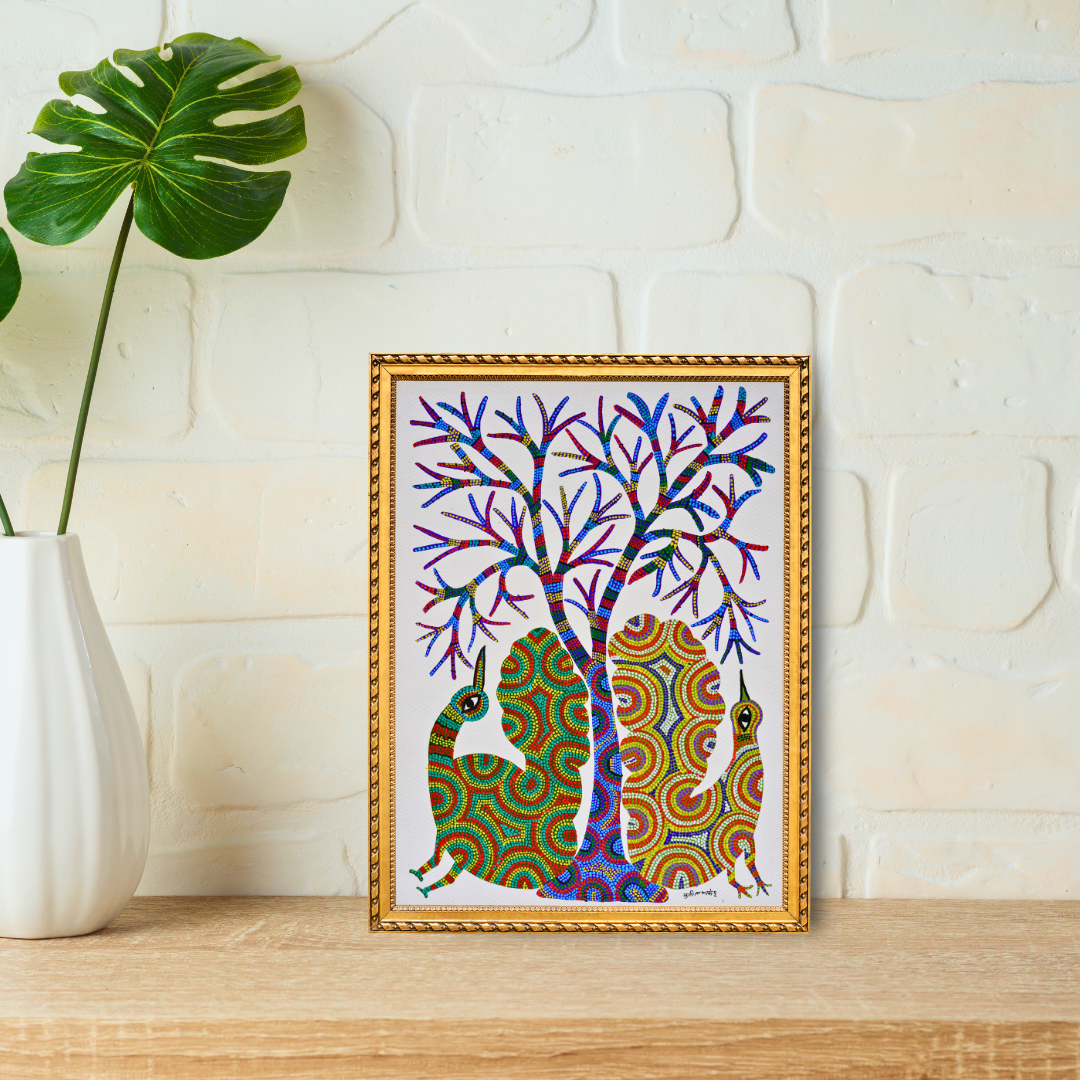 Depicts Wildlife Harmony through Tribal Symbolism - Showcases the connection and reverence of the Bhil tribe with nature and adds a peaceful and positive vibe to any space it is added to.