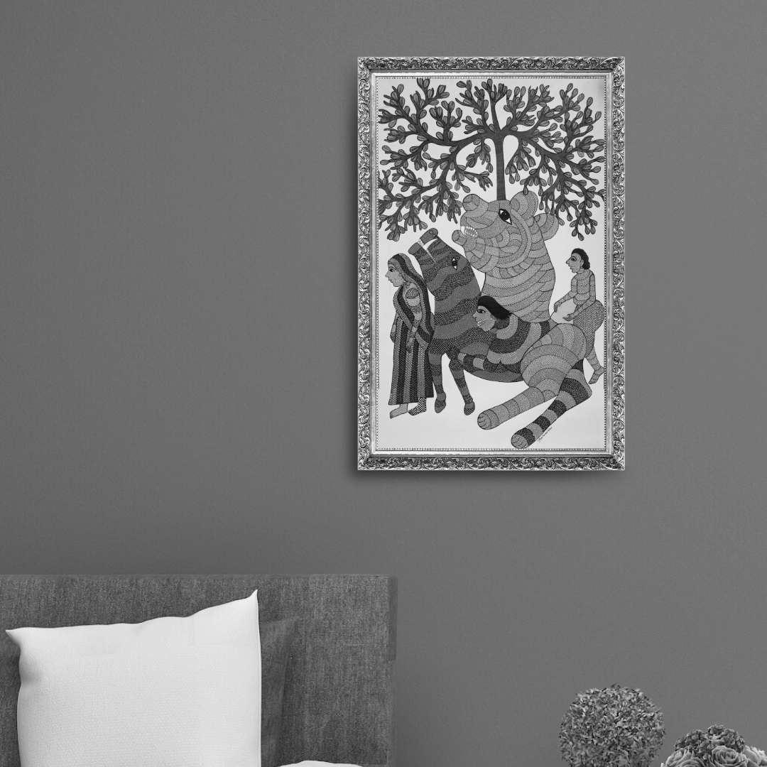 Bring home the beauty of Gond art and the power of tribal women with this one-of-a-kind piece.