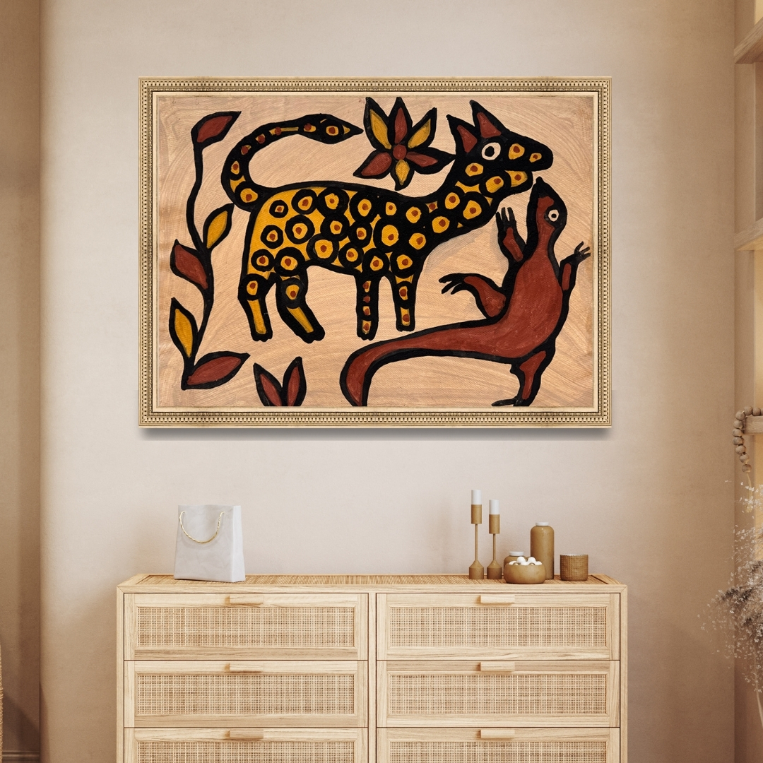 Wild Rhythms of the Grove reveals the pulse of the forest through the vivid imagery of a deer and a lizard in motion. In this work, Karu Ganju captures the natural rhythm shared by all creatures, where life unfolds in balance and quiet conversation.