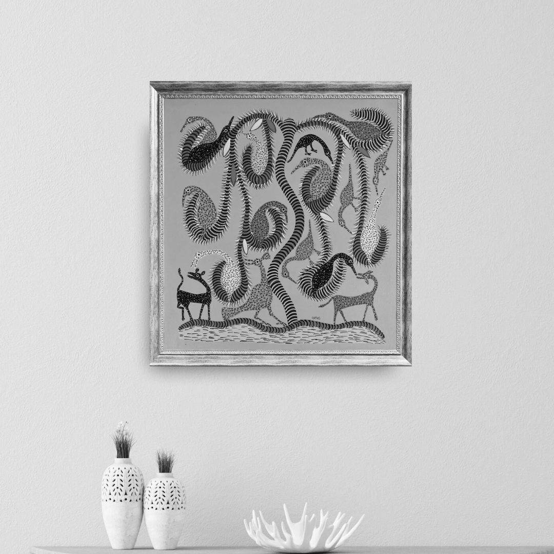 Handpainted with love by Padma Shri Bhuri Bai, an artist who has won one of India’s highest honours for representing the artform, bringing home this painting is like bringing home a valuable piece of Indian folk and tribal art. Whether you're a lover of Indian folk and tribal art, a collector of Bhil paintings, or someone discovering traditional Indian art forms for the first time, this piece offers a timeless glimpse into India’s rich indigenous heritage. Your search for 100% original Bhil art ends here.