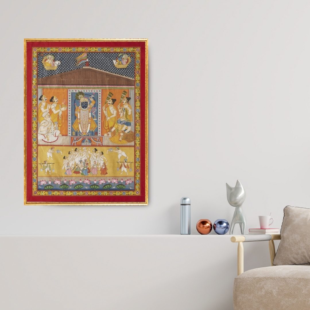 - Intricate Pichwai craftsmanship adds authenticity and devotional charm