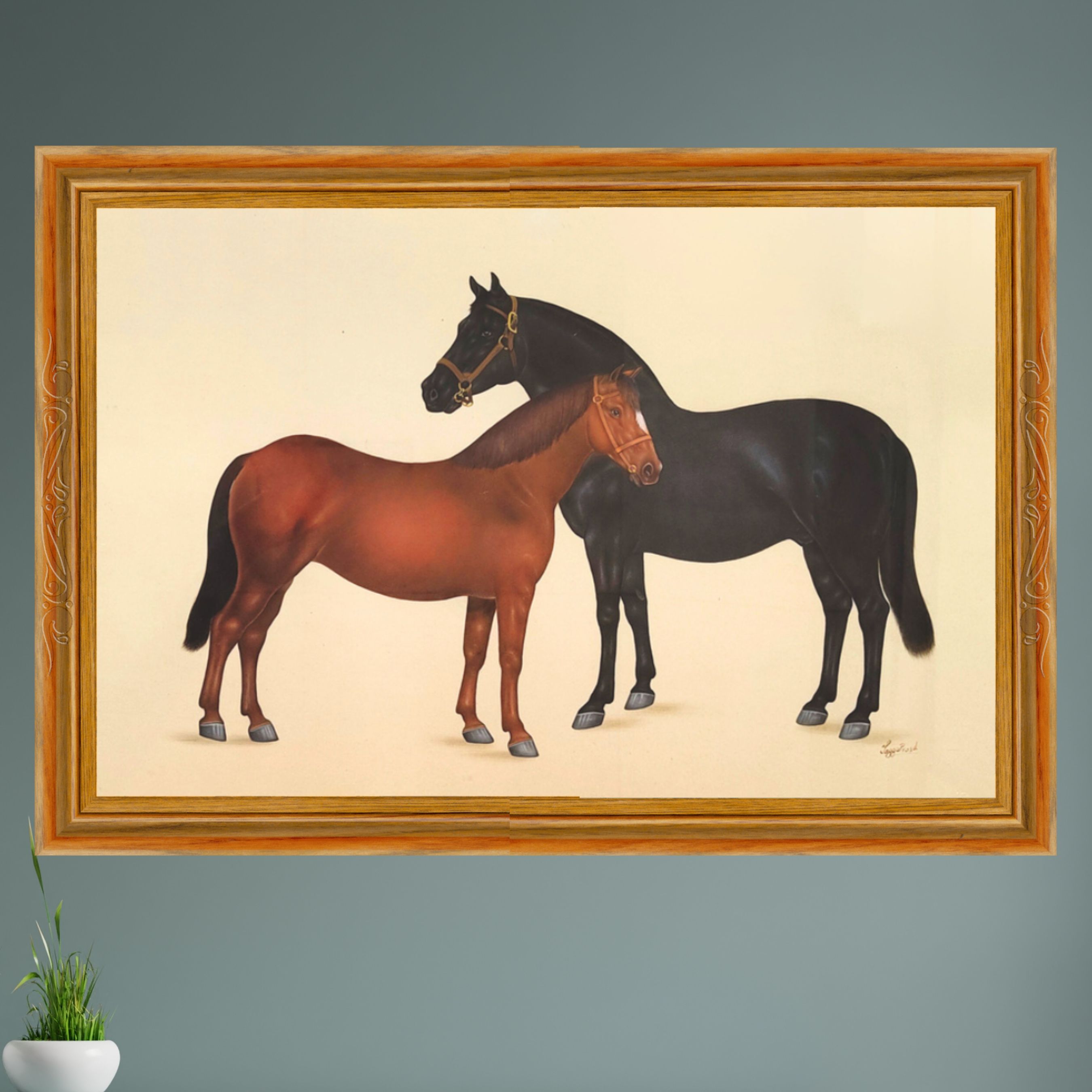 In this painting, Jaggu Prasas has created a pair of horses in close proximity e...