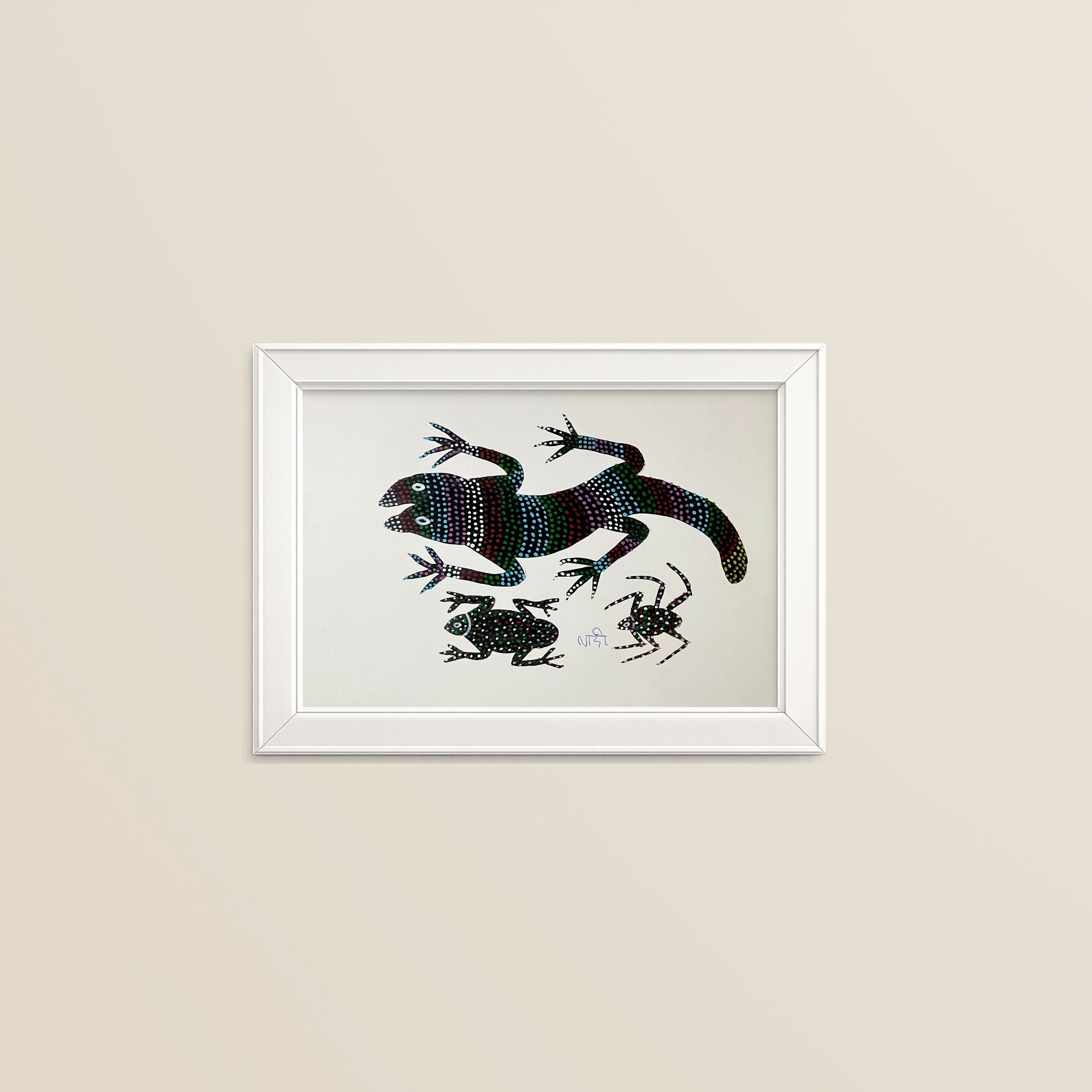 A large dark lizard stretches diagonally across this handmade painting by Lado B...